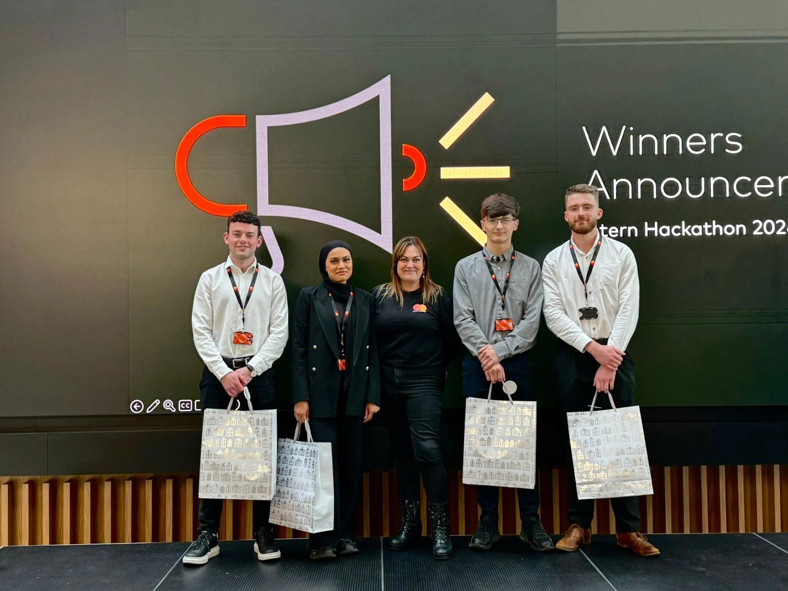Last week, we wrapped up the final stage of the Mastercard Intern Hackathon, and I’m buzzing to share that our team, Grzegorz Maniak, Fiza Jamil, James O’Connell, and myself, came in first place!